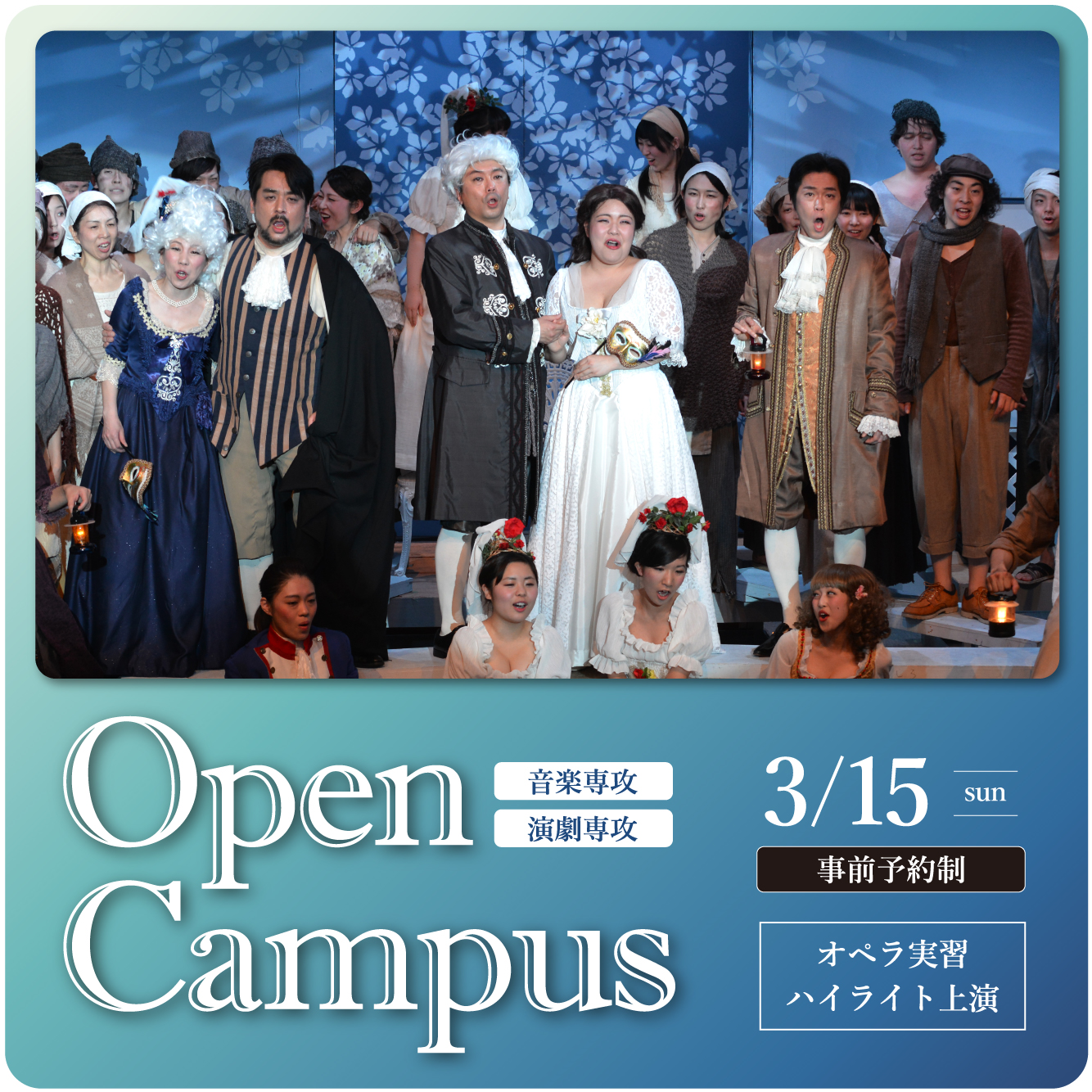| ♪ | ★ | 3月15日(日) | 13:00~ | 音楽専攻&演劇専攻コラボ企画 オペラ実習ハイライト上演 (演劇専攻は3つの入門講座もあります!) |