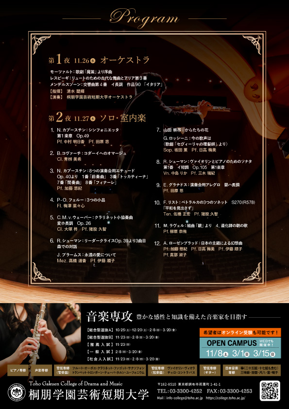学内オーディションを通過した学生たちが奏でる二日間。ぜひお聴きくださいませ♪