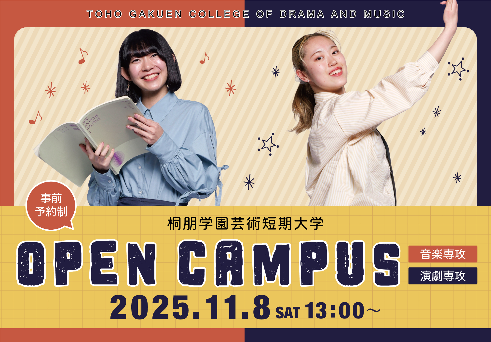 次回オープンキャンパスは、音楽専攻:2026年3月1日(日)&15日(日)、演劇専攻:2026年3月15日(日)、に開催予定です。